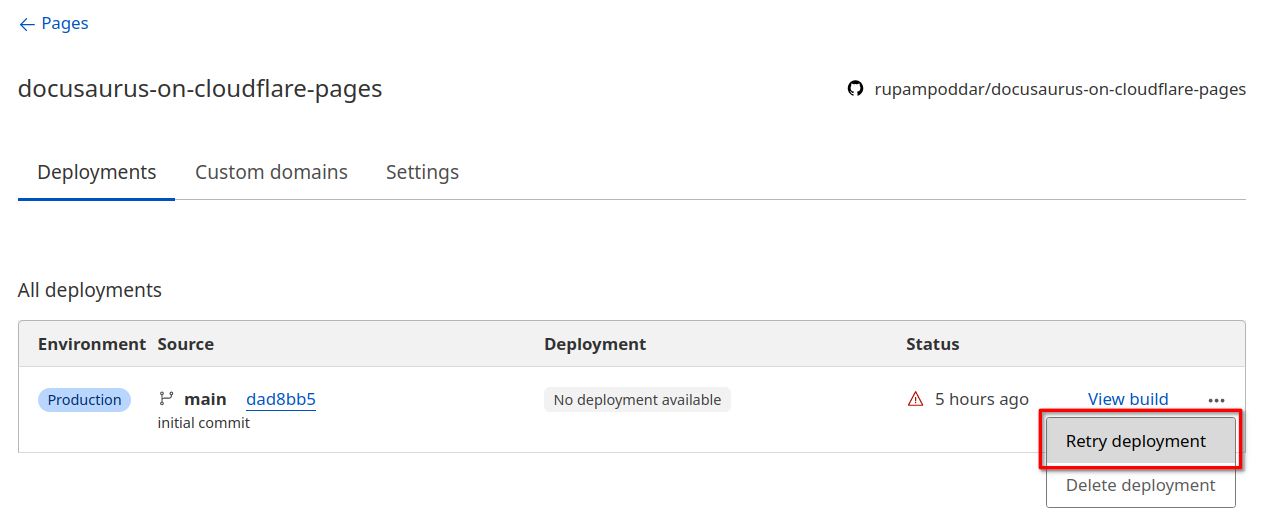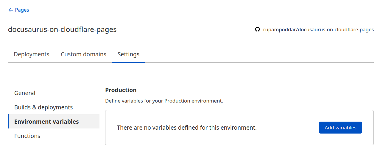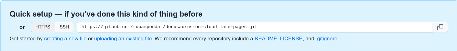 git remote add origin https://github.com/YOUR_USERNAME/docusaurus-on-cloudflare-pages.git