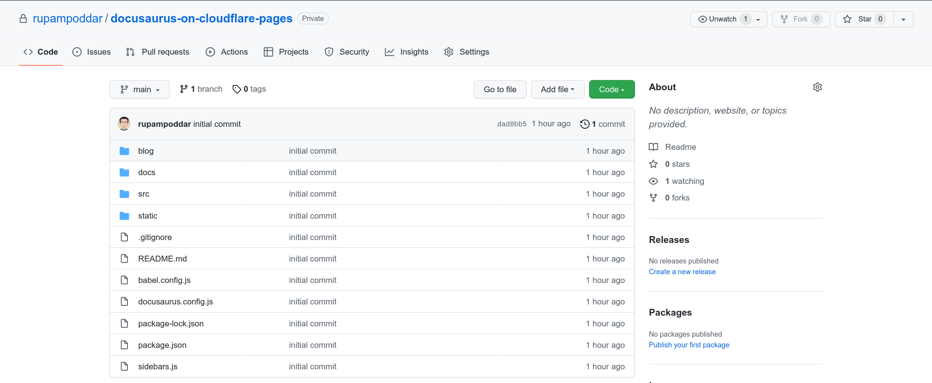 In this blog post we'll setup a Docusaurus site locally, host the source code on Github private repository and finally publish the site using Cloudflare Pages.
