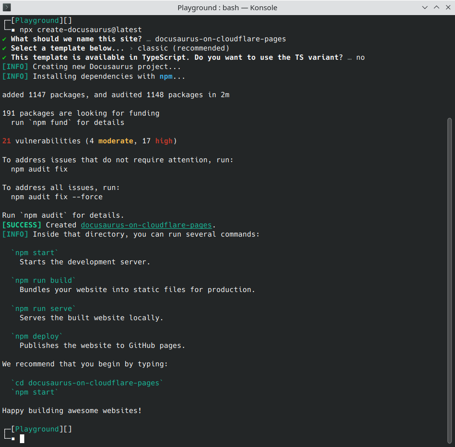 Stop the Docusaurus local server (if still running) and run the following commands in the terminal (or command prompt on windows).